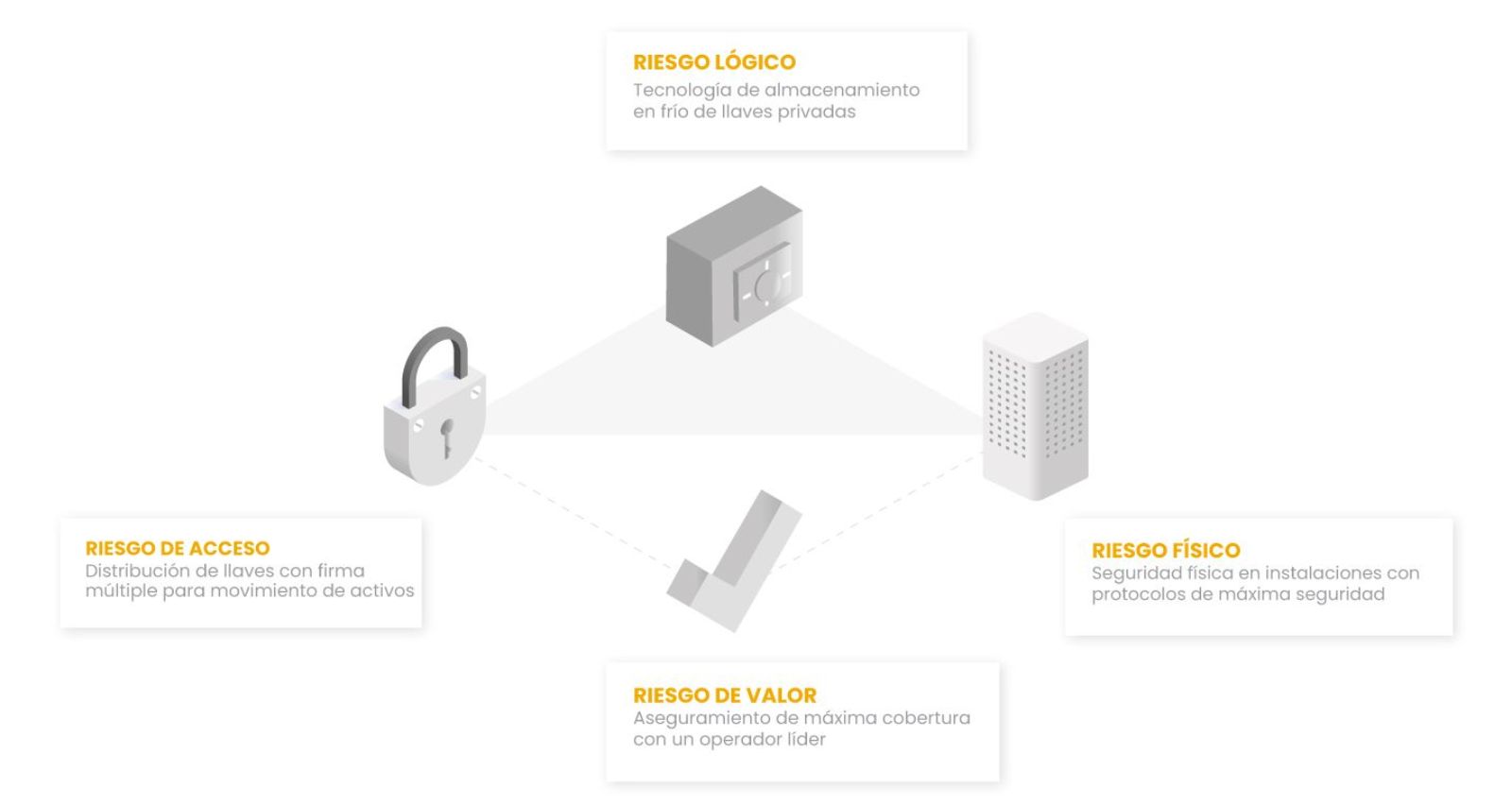 Prosegur Crypto es la única plataforma de custodia de activos digitales que no se conecta nunca a internet gracias a un modelo de cifrado patentado. La combinación de esta encriptación con nuestros protocolos de seguridad físicos hacen de nuestra solución un modelo único en el mundo.